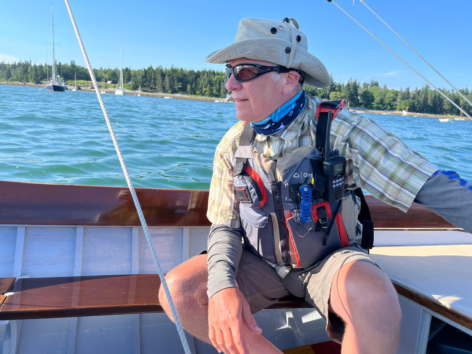 Living in landlocked Guilford, Vermont, Casey Blust is first mate at the Brattleboro Hospital Cardio-Pulmonary Rehab Center. He has logged decades as an athletic trainer and coach in various sports. Casey builds boats large and larger, from “Freya”, his own Caledonia Yawl, launched on Spofford Lake NH in 2016, to the massive collectively-built schooner Arabella, dedicated at Buzzards Bay in 2022. As an experienced builder, and a sailing instructor in the waters off Brooklin—self-taught all the way! —Casey always offers good advice and extra hands to his small-boat-building neighbors; in fact, he is often the first person they call.