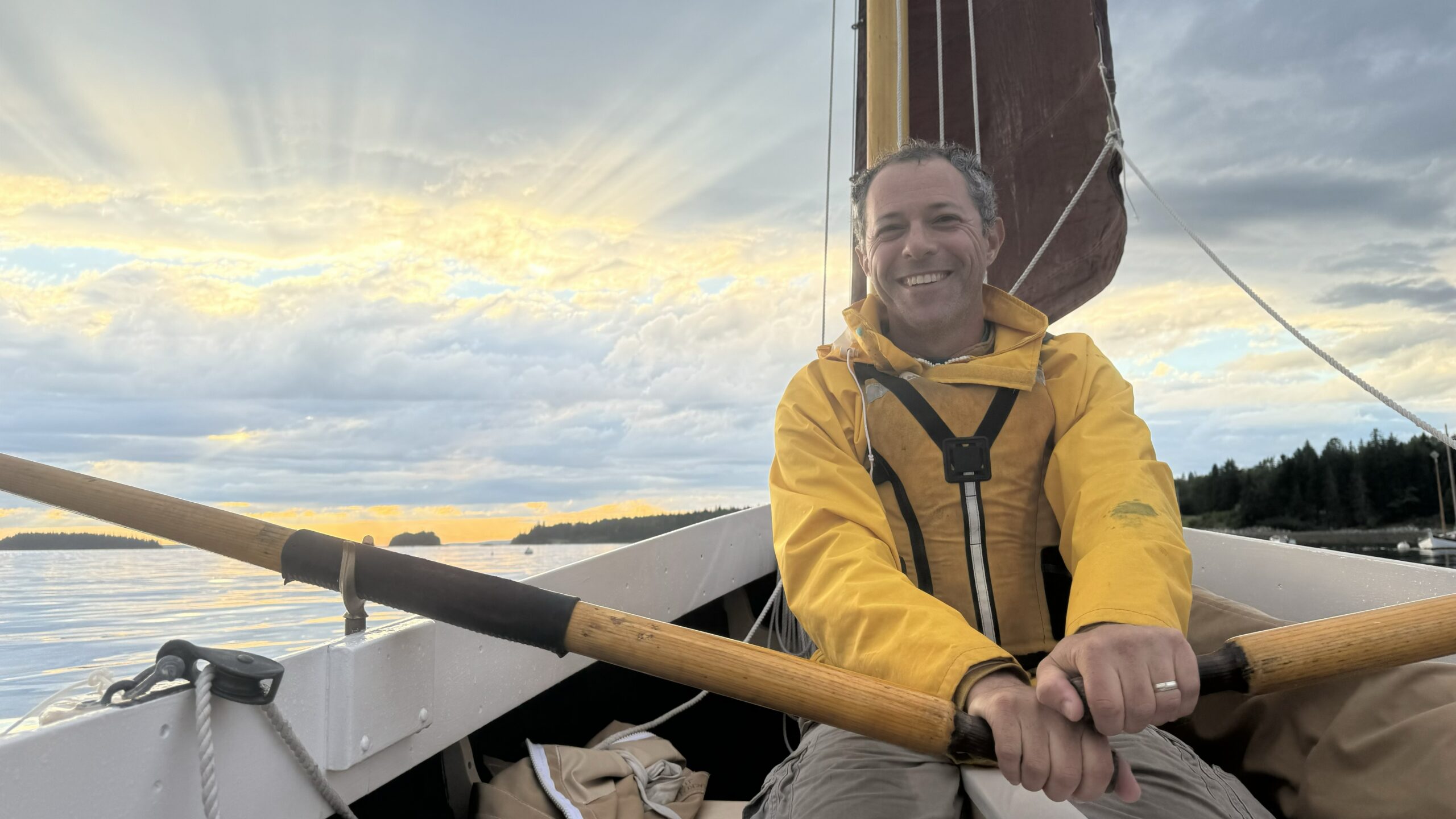 JEFF EVANS has been sailing since he was unceremoniously cut from the fifth-grade baseball team and joined his school’s sailing club. He learned to sail on Mercurys, Sunfish, and other small craft at Community Sailing in Boston and at the Chewonki Foundation in Wiscasset, Maine, where he was a summer camper. Jeff taught sailing in the summers on the Maine coast at Chewonki through college and learned seamanship and navigation on the 125′ schooner WESTWARD as a student at the Sea Education Association’s Sea Semester program in Woods Hole, Massachusetts. After college he returned to Chewonki, where he led three-week sailing wilderness trips for teens and college students along the Maine coast as captain of a traditional wooden 26′ Crotch Island Pinky and a 28′ Mackinaw boat. Jeff worked as a research assistant on several extended bluewater scientific cruises on the NOAA ship RONALD BROWN in the North Atlantic and Central Pacific with the Woods Hole Oceanographic Institution, followed by two years at the Marine Biological Laboratory, also in Woods Hole. Eventually, he drifted inland and completed his PhD in ecology and entomology at Michigan State University. Jeff now works as the Director of Conservation at Five Rivers Conservation Trust in Concord, New Hampshire, where he lives with his wife and three children. In his free time, he sails his Haven 12 1/2 and monkeys with a 16′, 1958 Century Resorter that he drags his kids around with. He swears he will finish building the Swampscott dory he began ages ago, and is still terrible at baseball.